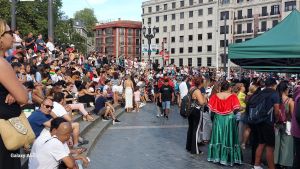 Día espléndido y gran ambiente de confraternización entre las personas que tienen su origen en diferentes zonas de Bolivia para festejar en comunión con la ciudadanía de Bilbao los 200 años de su independencia, el 6 de agosto de 1825.